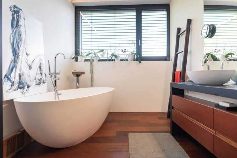 Это оптимальный вариант для поклонников современного дизайна, которые не хотят тратить огромные деньги на высокотехнологичную сантехнику и материалы.
