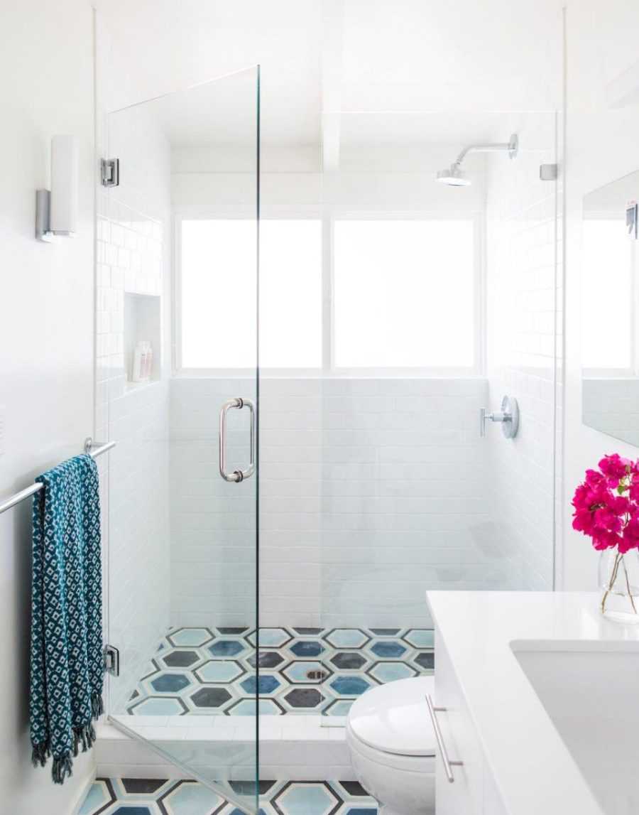 Чтобы максимально использовать пространство, установите в ванной стильную душевую кабину без поддона.