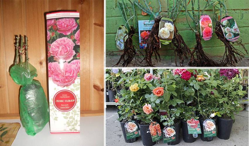 Как правило, эти саженцы продаются с укороченными стеблями и корнями, завернутые в полиэтиленовую пленку и упакованные в картонные коробки. Это так называемые «розы из коробок». Как сохранить эти саженцы после покупки до посадки мы уже рассказывали в статье хранение саженцев роз.