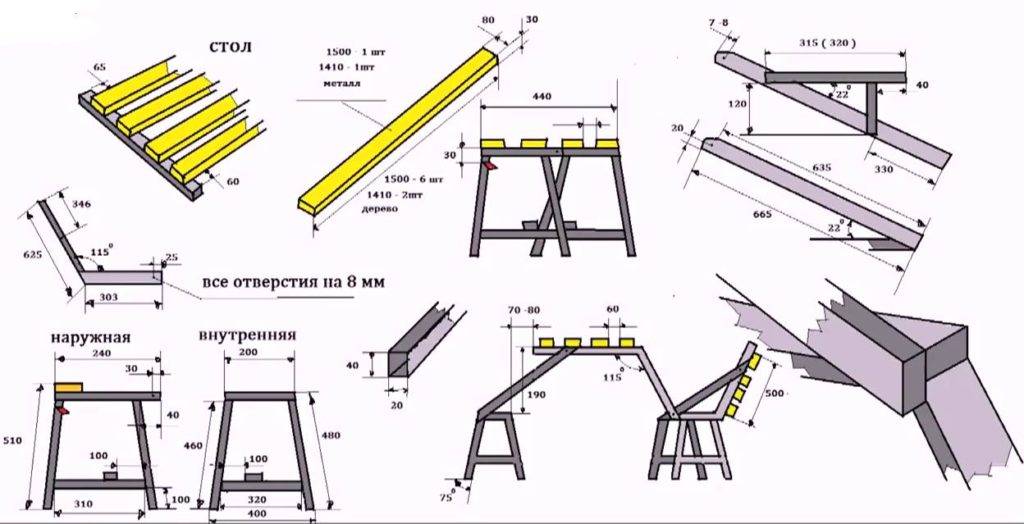 Скамейка — трансформер из металлического профиля делается аналогично деревянной, но только с некоторыми изменениями.