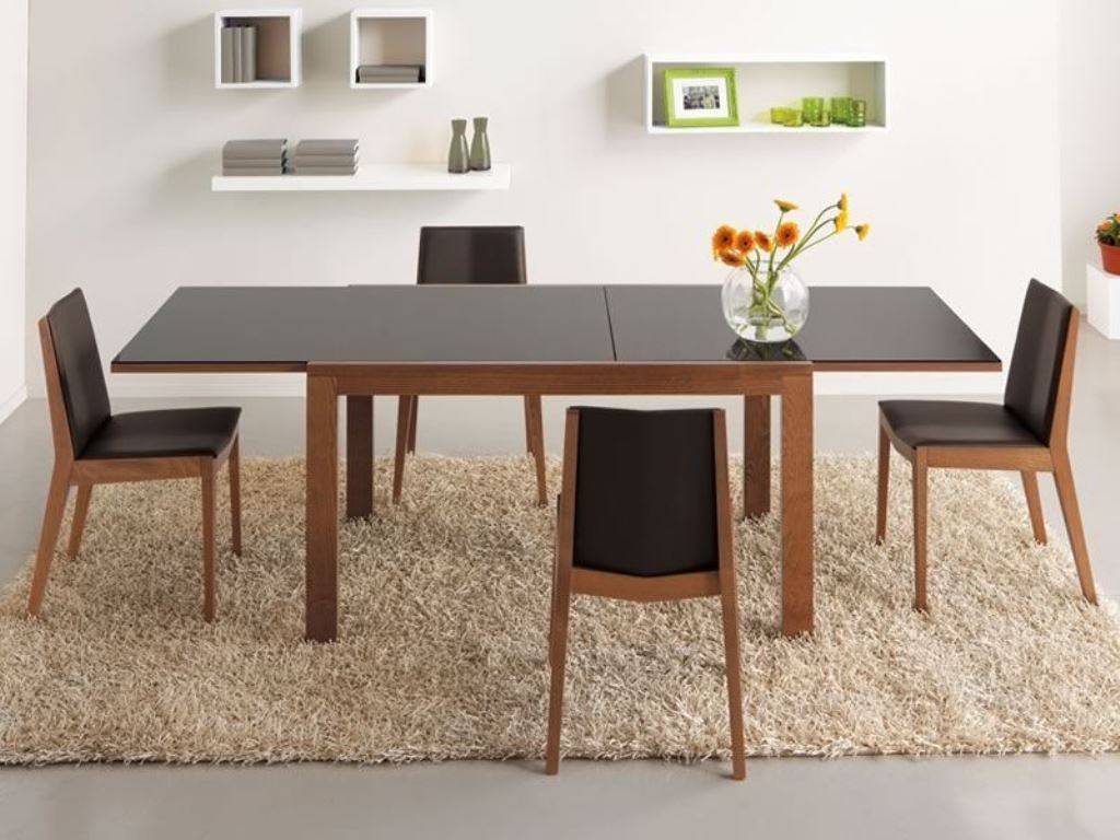 В современных стилях. Рекомендуются модели с тонкой столешницей из дерева. Вариант из стекла или пластика визуально будет выглядеть меньше своих реальных размеров. Пластмассовый стол, дополненный такими же стульями, станет отличным вариантом для гостиной (столовой, кухни) в стиле хай-тек или минимализм.