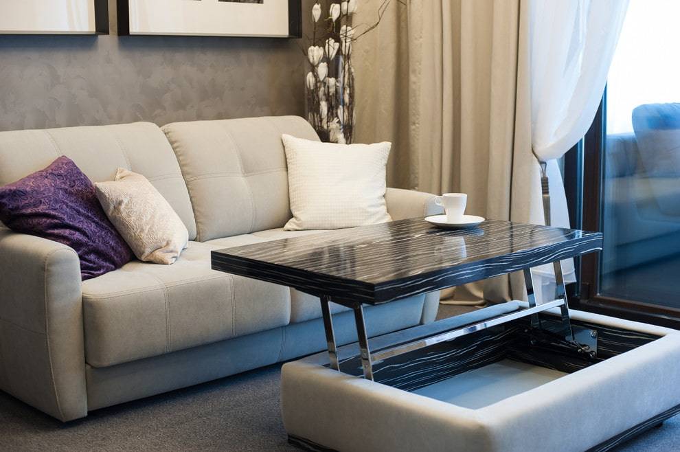 Обратите внимание, что для малогабаритных квартир идеальный вариант – столы-трансформеры, угловые компьютерные модели. А вот от журнальных столиков лучше отказаться в целях экономии драгоценных метров, т.к