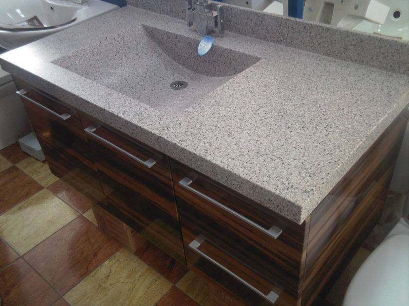 Существуют модели и из композитного материала, состоящего на 90 % из натурального кварца. Он обладает превосходной прочностью.