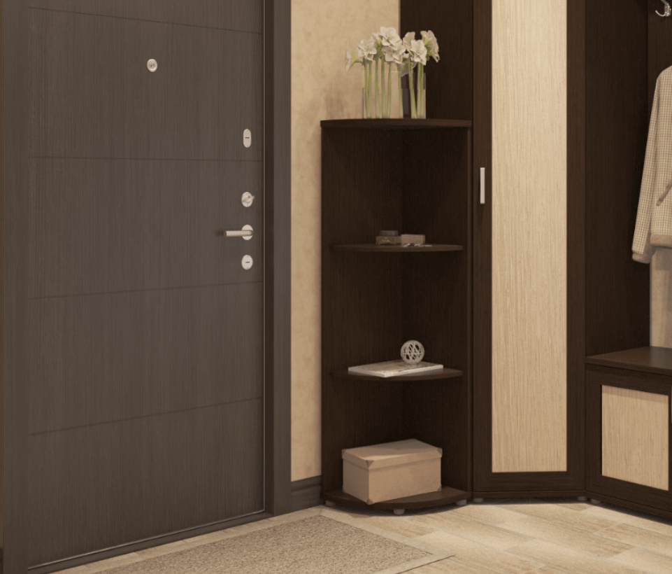 Кроме того, в планировке квартиры играет роль размер собственно шкафа. Маленькая угловая прихожая – отличное решение для владельцев жилья.