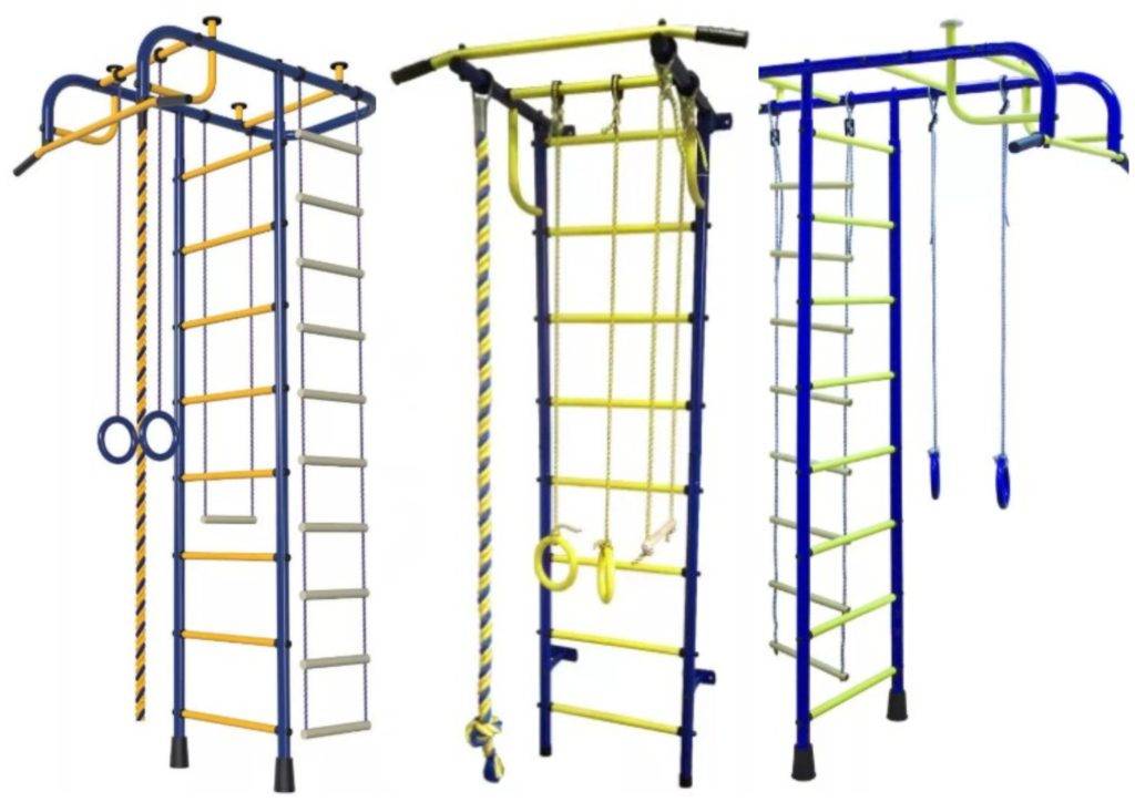 Детские шведские стенки изготавливаются в четырех модификациях, каждая из которых имеет свои конструкционные особенности и возможности занятий для ребят: