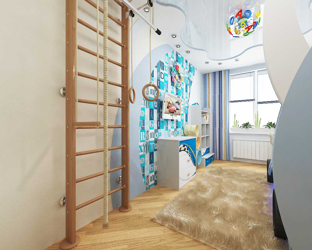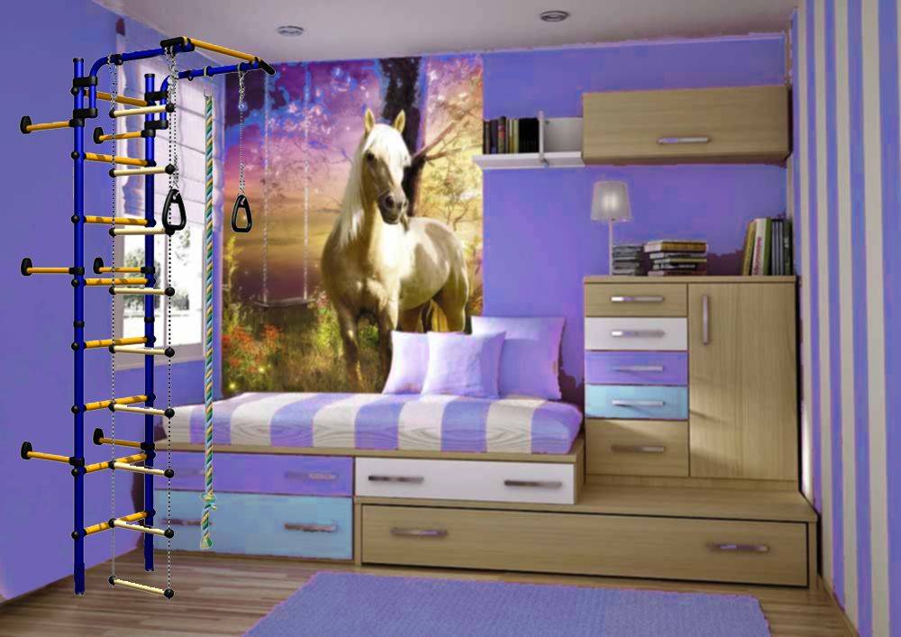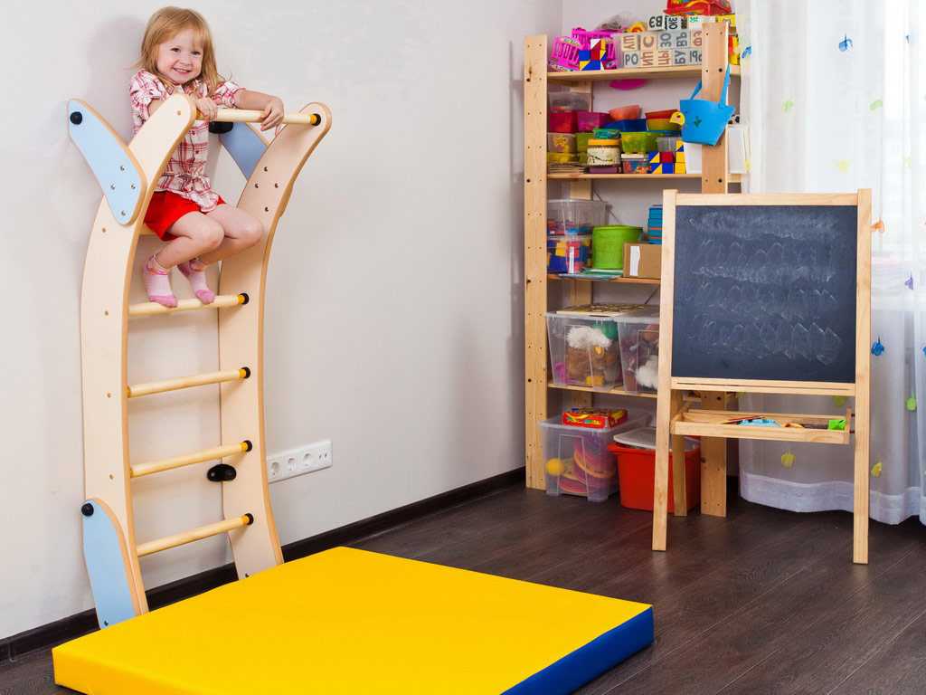 • Сама конструкция не займет много места, так как располагается вдоль стены, но вокруг нее должно быть достаточно пространства, чтобы, выполняя упражнения, ребенок не смог бы задеть и ударится о предметы, находящиеся слишком близко.
