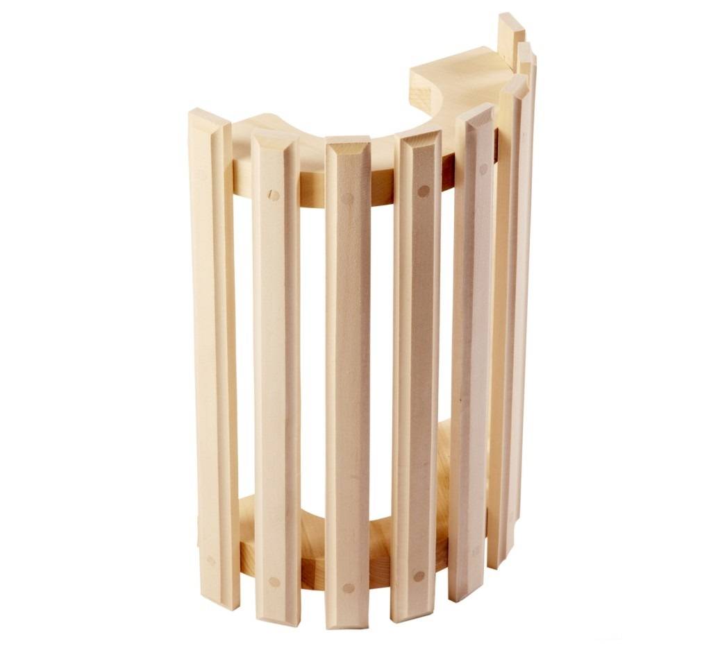 Лампы для парной помещаются в так называемые ограждения. В случае если светильник все же лопнет, это изделие поможет защититься от осколков. Так как бани обычно деревянные, то можно приобрести светильники с ограждениями из того же материала. Либо можно закрыть их деревянными рейками и другими самодельными конструкциями, которые дополнительно будут отвечать за рассеивание светового потока.
