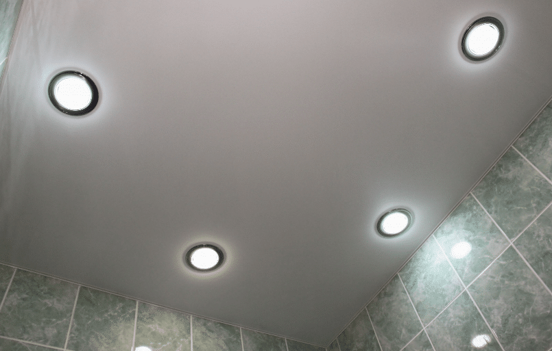 Для натяжных потолков каркас точечных ламп должен быть защищен уплотнительным термическим кольцом из пластика, чтобы пленка не начала плавиться