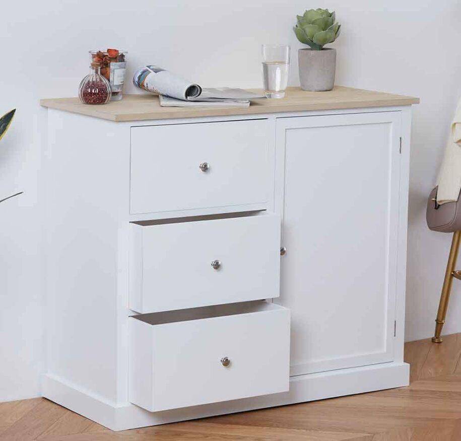 Вместо громоздкого зеркала с тумбой, лучше просто повесить его на стену, а купив шкаф с зеркальной дверцей, можно будет видеть себя в полный рост.
