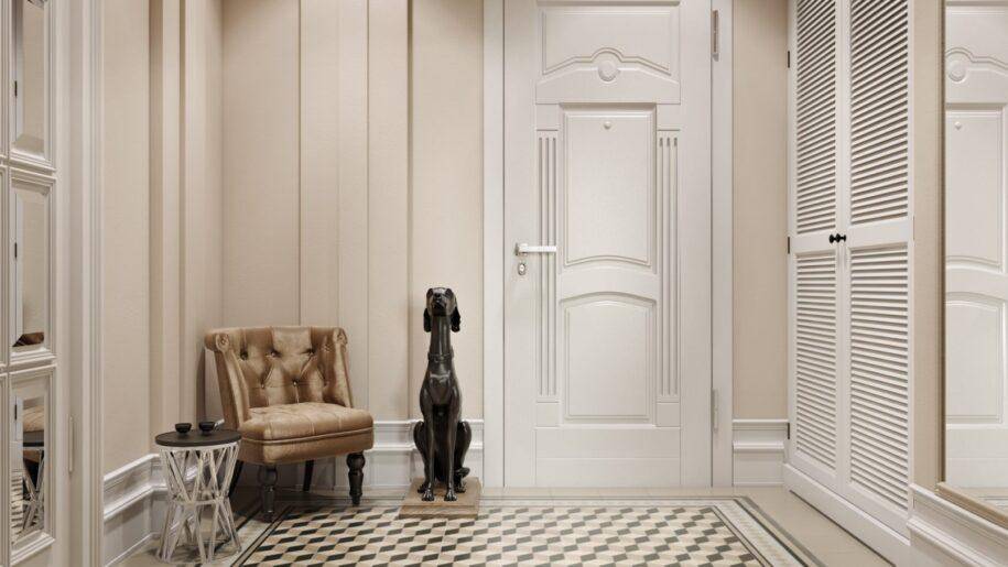 Стены традиционной классической прихожей преимущественно светлые и теплые. Все детали гармонично сочетаются между собой, в помещении много необычных и красивых элементов декора. Для неоклассики характерна более широкая цветовая гамма. Могут быть использованы контрастные цвета и яркие детали.