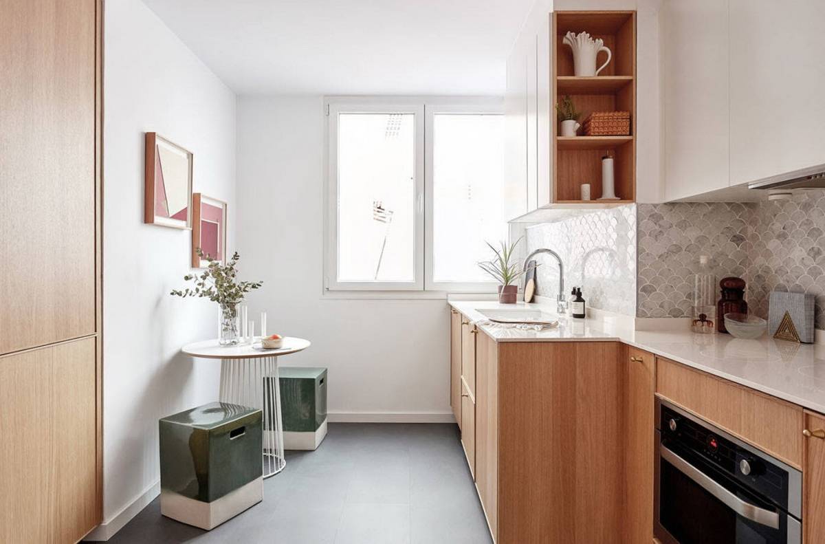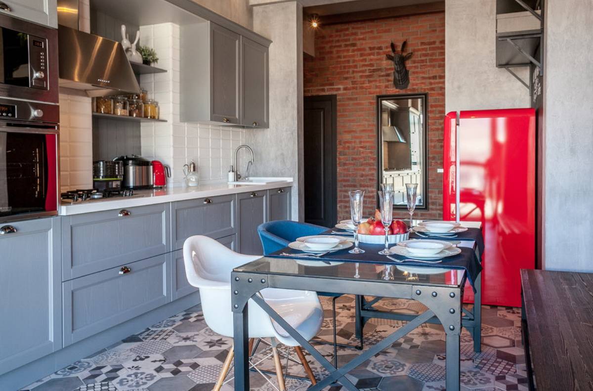 Подобная конструкция функциональна и удобна в эксплуатации. Изделия могут подойти практически под любой интерьер кухни.