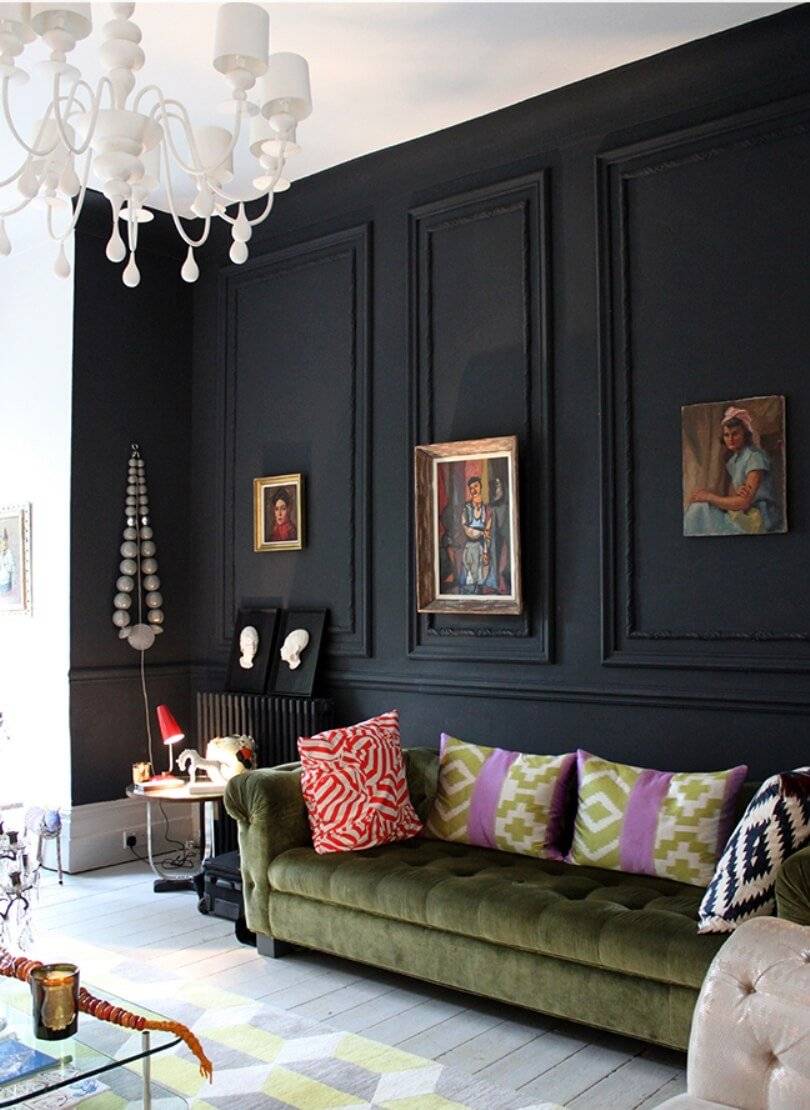 Глубокие оттенки позволяют сфокусировать внимание на красивых деталях предметов мебели и аксессуаров. В больших помещениях, которые выходят на освещенную солнцем сторону, можно покрасить стены в оттенок черные оттенки, так как они будут выгодно выделяться