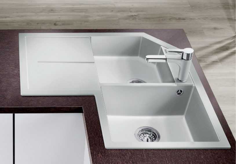Есть предложения и более дорогих вариантов из нержавейки. Самая высокая цена заявлена на мойку компании Бланко Типо – 3955 рублей. Раковина выполнена из матовой стали с габаритами 78×50 см. Вес 3 кг. Прямоугольная форма с мелкой чашей выгодно подчёркивают стильность изделия.
