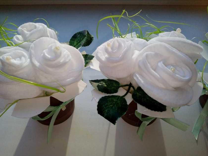 Довольно простой и дешевый вид топиария. Делать цветы из салфеток можно не только белыми, но и ярких цветов. Такой вариант довольно симпатичный.