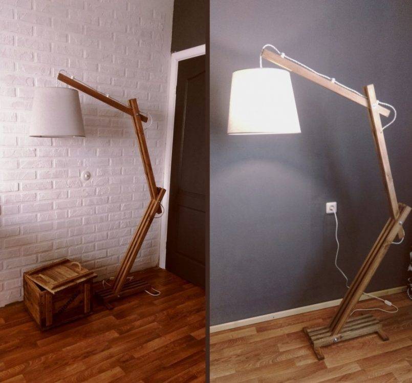 В основе некоторых светильников стойка выполняет роль основания и абажура. Это довольно сложные конструкции и на изготовление может понадобиться много времени и материалов.