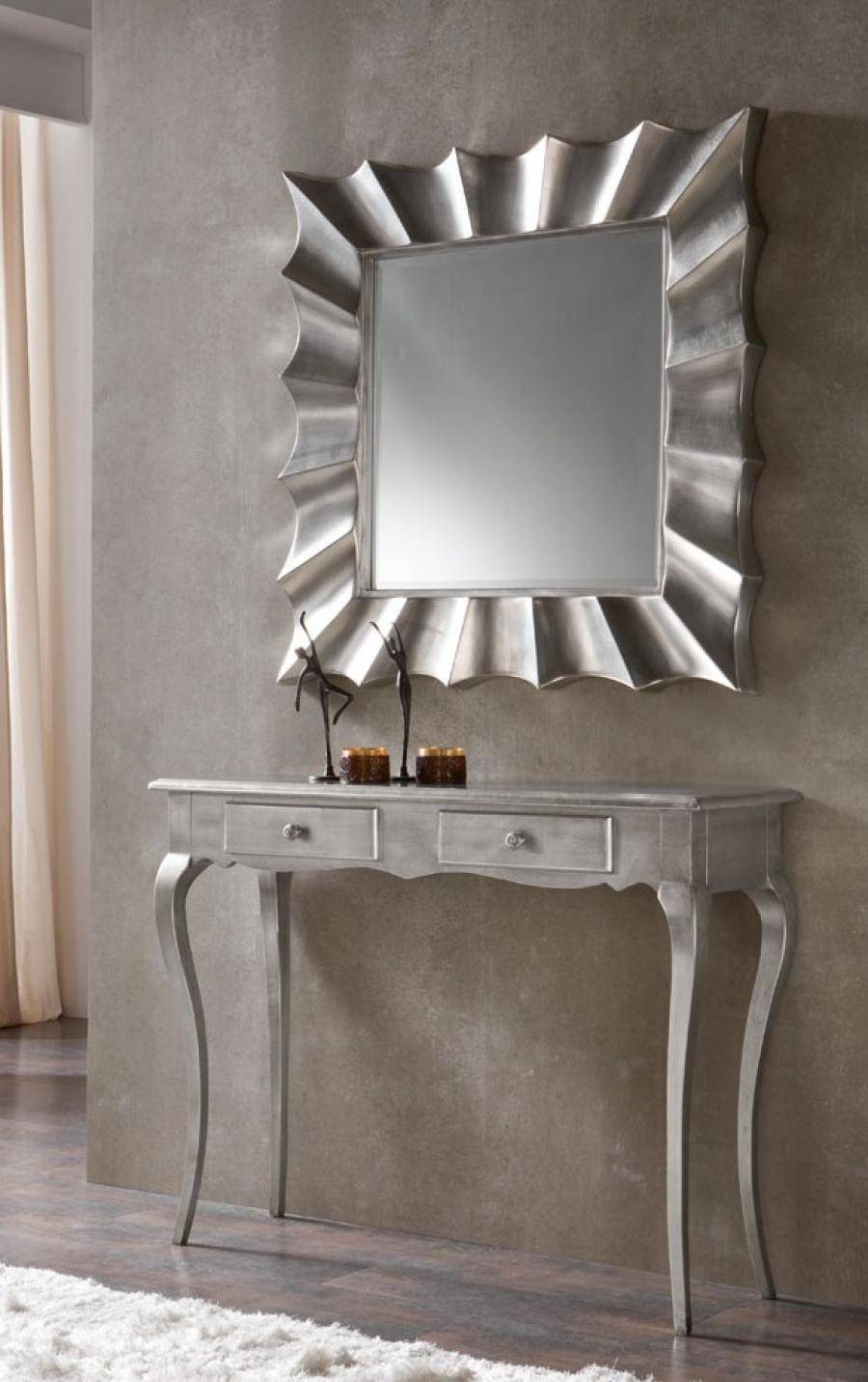 Стены, выкрашенные в подражании металлическому блеску, лучше всего подчеркиваются зеркалами в гладкой раме, лишенной объёма. Для авангардного образа лучше всего остановить свой выбор на рамах чёрного или стального цвета.