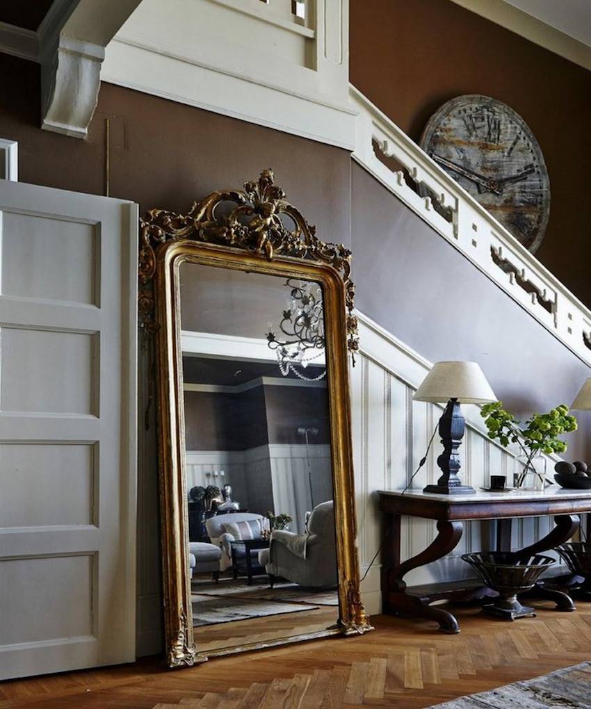 Следуя фантазии дизайнера, деревянное обрамление может стать произведением искусства: оно может быть украшено изысканным орнаментом с помощью позолоты и серебрения, уникальной резьбой, а иногда и россыпью драгоценных камней. Часто можно увидеть подобные изделия на изогнутых ножках. Природные материалы являются эталоном высокого стиля и достойного украшения. Особенно зеркало напольное деревянное в полный рост займет свое достойное место в классическом оформлении помещения.
