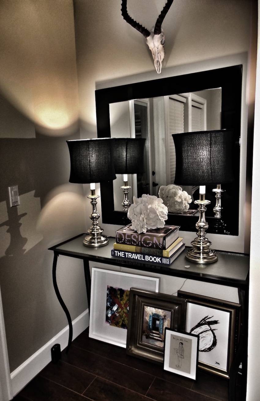 Если нет нужного вам трюмо, то просто приобретите декоративный столик и отдельно к нему найдите или закажите зеркало, которое можно будет повесить над столешницей. Такое решение является очень практичным.