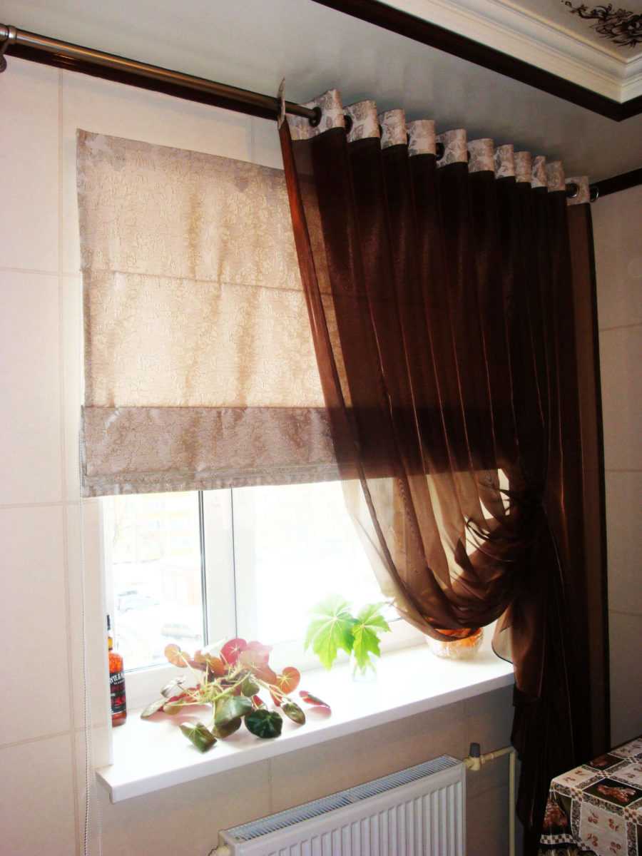 Однако римские и тюлевые занавески удачно комбинируются только в том случае, когда цвет и фактура ткани и тех, и других подобраны грамотно.