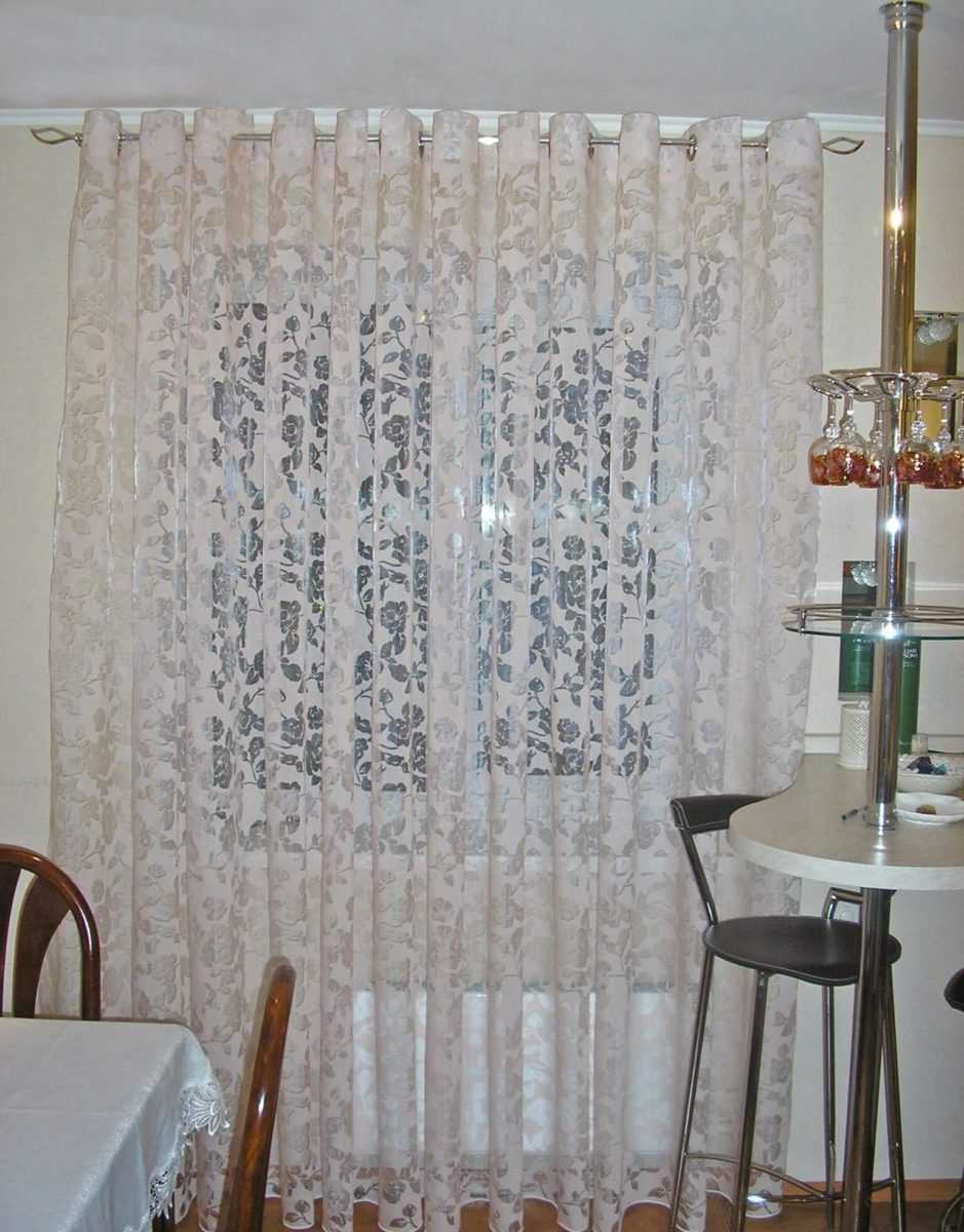 Шторы для кухни из органзы можно разделить на три группы, в зависимости от типа волоонк, которые использовались для ее изготовления. Это: