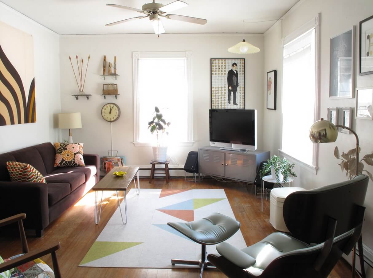 Тумба для ТВ должна соответствовать габаритам гостиной. Сидя перед экраном, зритель всегда должен держать его в центре поля зрения.