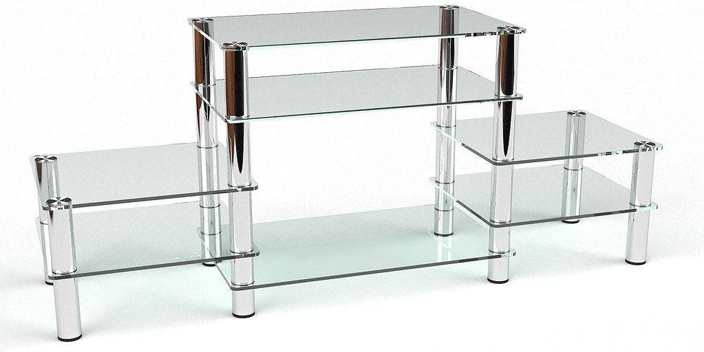 Стекло. Стеклянные тумбы под телевизоры являются очень популярными среди покупателей домашней мебели. Этот факт объясняется тем, что они максимально сочетаются с современной стилистикой. Стеклянные конструкции могут иметь различную форму. Также они бывают прозрачными или непрозрачными. Стекло нередко комбинируют с металлическими деталями. Такое сочетание смотрится стильно и оригинально. Для изготовления мебели используется закаленное стекло. Его прочностные характеристики довольно высоки.