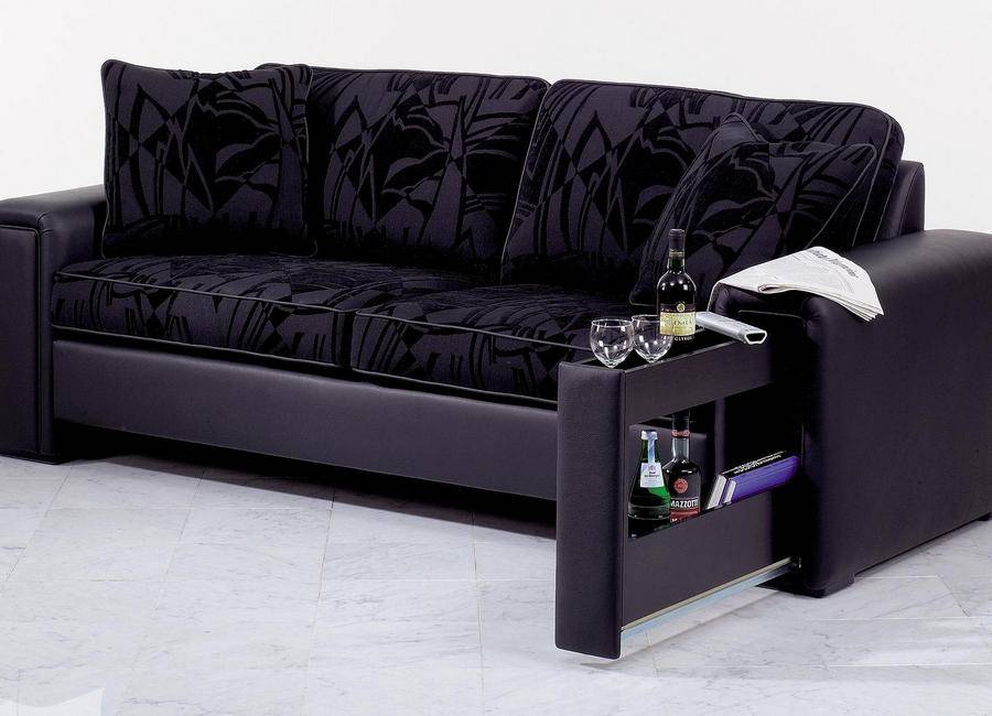 Кухонная мебель часто имеет места для хранения вещей. Это могут быть небольшие ящики, полки, шкафчики. Можно даже приобрести на заказ стильный диван, в который встроен мини-холодильник.