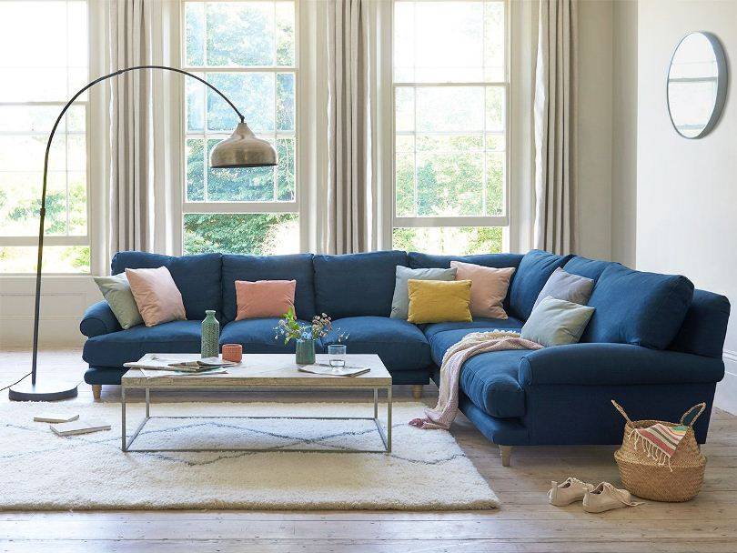 - Лен подходит для обивки угловых диванов, которые будут размещены в помещениях с большим количеством солнечного света. Этот стильный и строгий материал устойчив к воздействию прямых солнечных лучей.