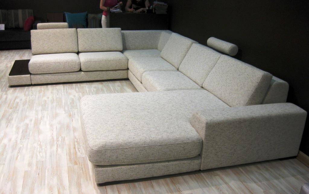 Что касается больших угловых диванов, то они представляют из себя конструкцию длиной два метра и больше. Выпускаются раскладные, монолитные, стандартные, модульные варианты и отдельный вид − мягкая мебель по индивидуальному заказу. У подобных моделей предусматриваются встроенные полочки, столики, мини-бар с подсветкой, аудиосистемой и другими функциями. Механизм трансформации позволяет разложить спальное место с размерами от 1,4х2 м до 2х3 м.