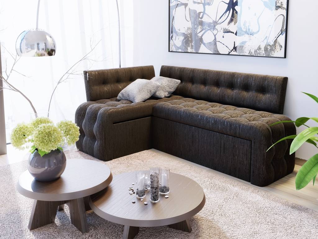 Если выбирать угловой диванчик для кухонного пространства, то лучше всего отдать предпочтение специализированным моделям. Такой уголок оборудован местом для сна на одного человека, а виниловая обивка с текстурой под кожу без последствий переживет чистку моющими средствами.
