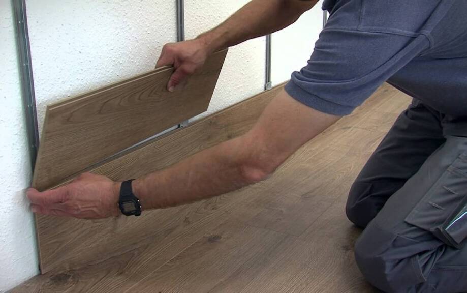 Важно также учитывать, что между полом и стеной, на которую монтируется ламинат, необходимо оставить небольшие зазоры. Позже их можно будет спрятать за плинтусом.