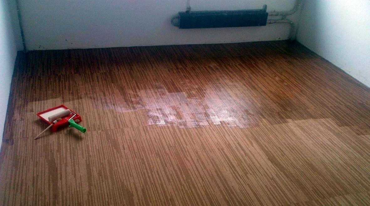 После высыхания клея пробковый пол нужно покрыть лаковым покрытием для его защиты.