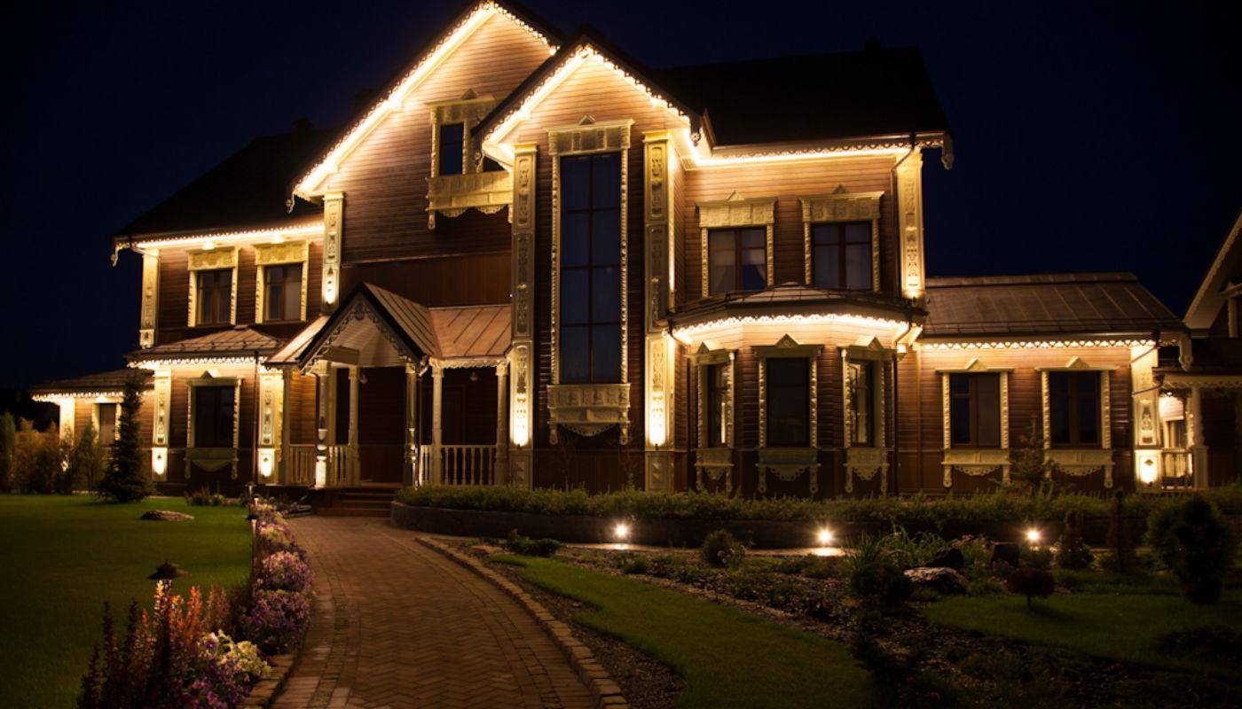 Когда проектируется подсветка фасада частного дома, хозяин занимается решением обеих задач сразу: постройка приобретает декоративные нотки и обеспечивает максимальную безопасность и комфорт перемещения по территории в вечерние часы.