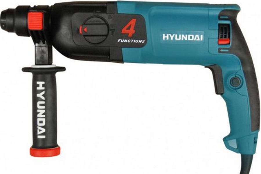 H 850 также оснащен удобной рукояткой, внутри которой можно хранить дополнительные буры и сверла, что опять же помогает при работе на высоте, когда нет свободных рук. Комплект поставки при цене до 4 тыс. рублей просто отличный. В кейс Hyundai положили два долота, три сверла и ограничитель глубины сверления.