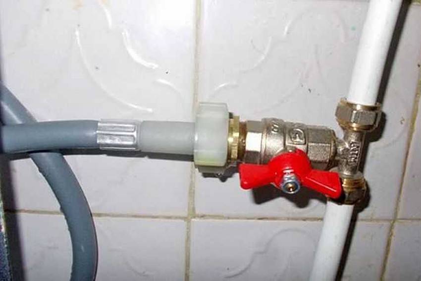 При наличии в доме пластикового трубопровода понадобится специальный инструмент для спаивания крепежей труб с переходниками и фитинги. На трубе с холодной водой устанавливают тройник. К нему через запорный кран подсоединяют шланг, который подает воду в аппарат.