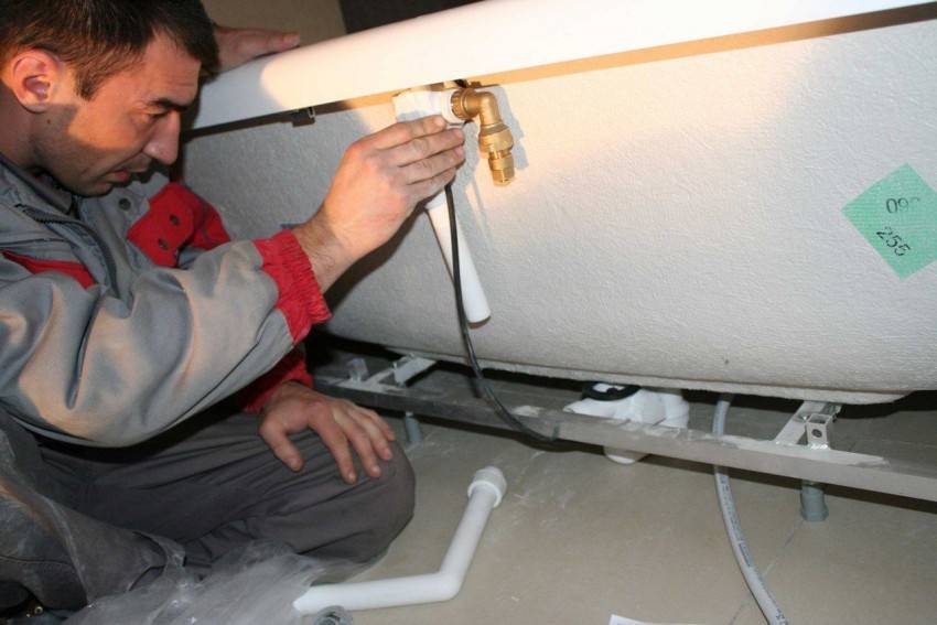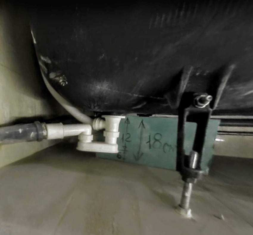 После окончания работ по установке ванны и подключения к канализации следует проверить конструкцию на герметичность. Для этого наливаем в ванну воду и проверяем все соединения на герметичность. После проверки сливаем воду из ванны и проверяем полный слив воды из ванны.