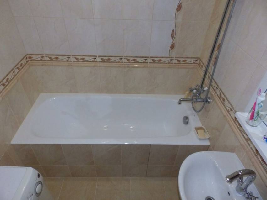 К преимуществам этого метода относят удобство выполнения работ, так как мастеру ничего не мешает. Также отсутствует риск повреждения сантехнического оборудования. Еще один плюс – легко заменить ванну на новую, при необходимости.