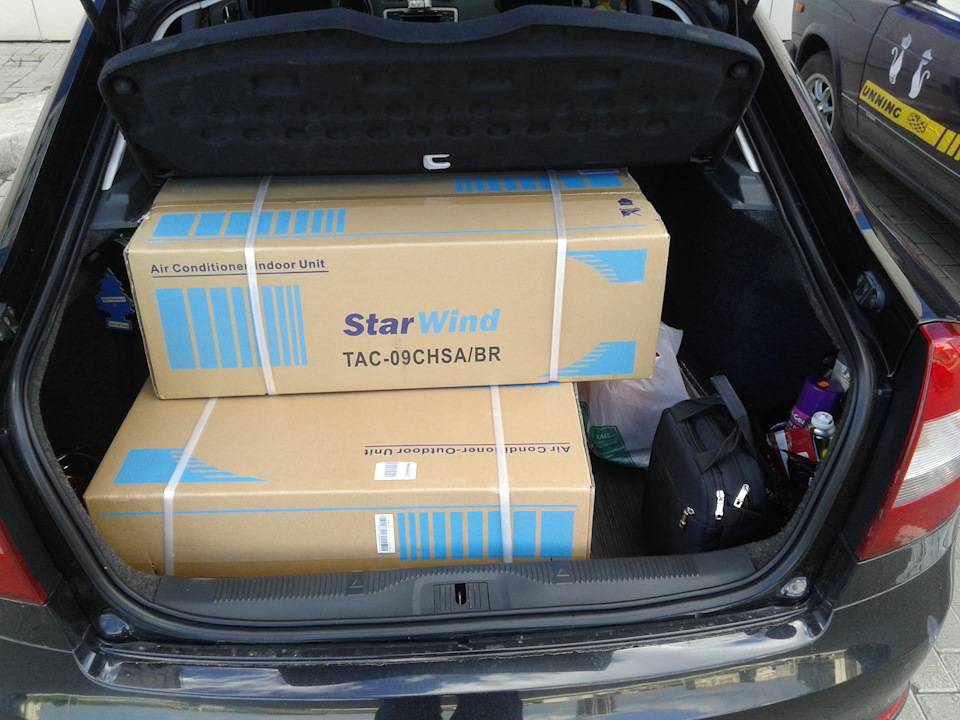 Впринципе, как и любой другой нормальный человек с достатком ниже среднего, я склонялся ко второму и третьему варианту, но ввиду отсутствия знакомых Петровичей третий вариант отпал само собой.И вот я счастливый, с суммой 16т.р., заказываю кондей, с расчетом 3т.р. из этих денег надо на установку, по факту осталось 2 тысячи.Хватило на Сплит-систему STARWIND TAC-09CHSA/BR (комплект из 2-х коробок) 13940руб.