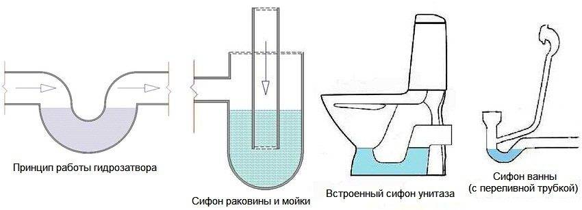 Каждый санитарный прибор в доме подключается к подводке не напрямую, а через U — образное небольшое колено, которое называют сифоном. В нижней его части в любой момент времени находится жидкость, которая создает гидробарьер для газов, образующихся в нечистотах. Благодаря ему, запах не проникает в помещение.
