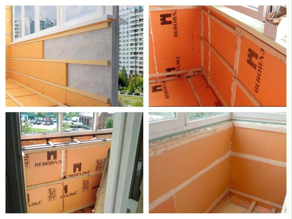 Рис. 16. Обрешетка, пароизоляция и установка утеплителя – основные процессы теплоизоляции балкона.