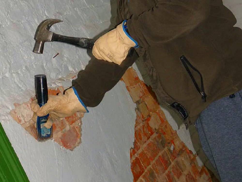 - устранение первичного отделочного материала, снятие штукатурки;