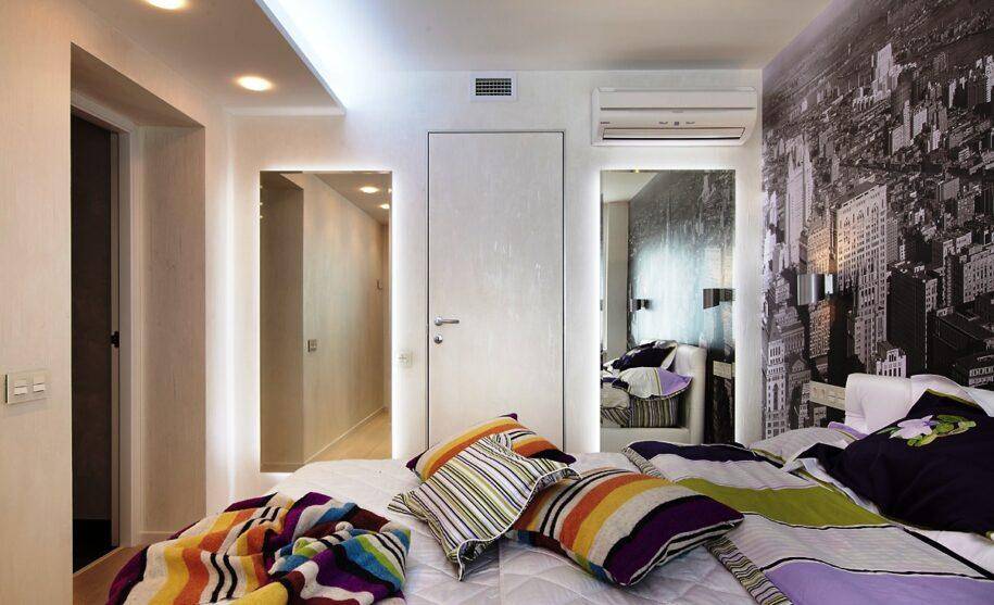 Различные источники освещения в спальне-гостиной Источник design-homes.ru