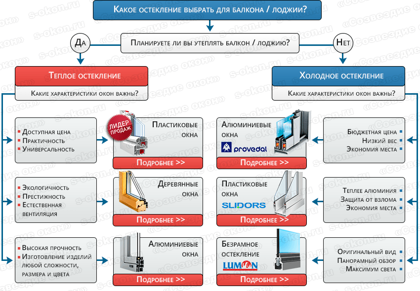 Каждый из выше перечисленных элементов имеет положительные и отрицательные стороны. Какой из материалов выбрать — решать уже собственнику. Установку окон на балкон смотрите в этом видео: