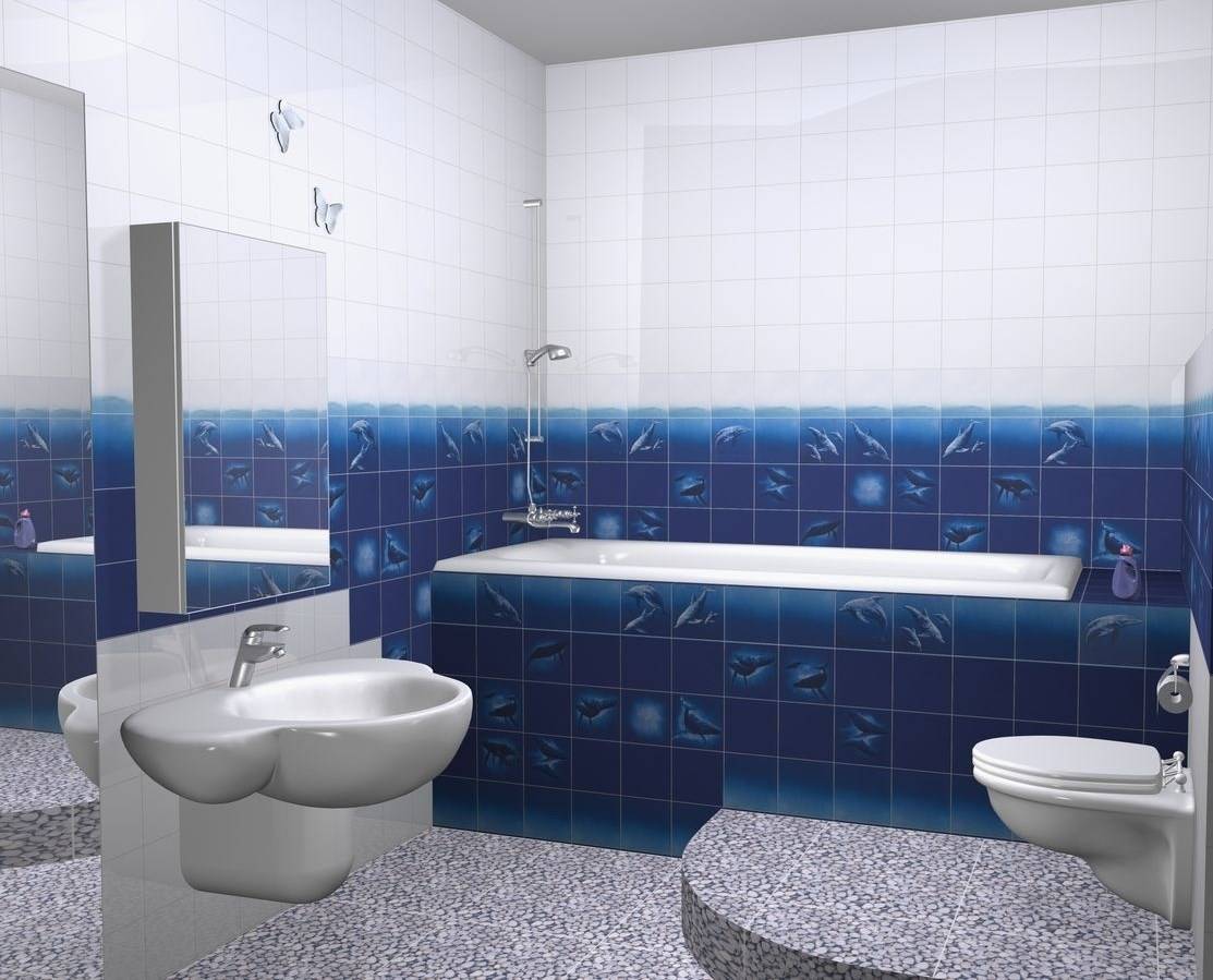 - стены и пол лучше оформить керамической плиткой белого и голубого/бирюзового оттенков;
