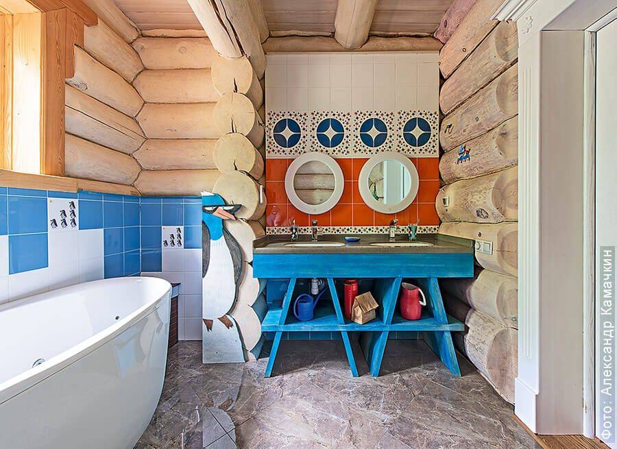 Колоритная ванная в коттедже от ПСГ «Вятский Дом»