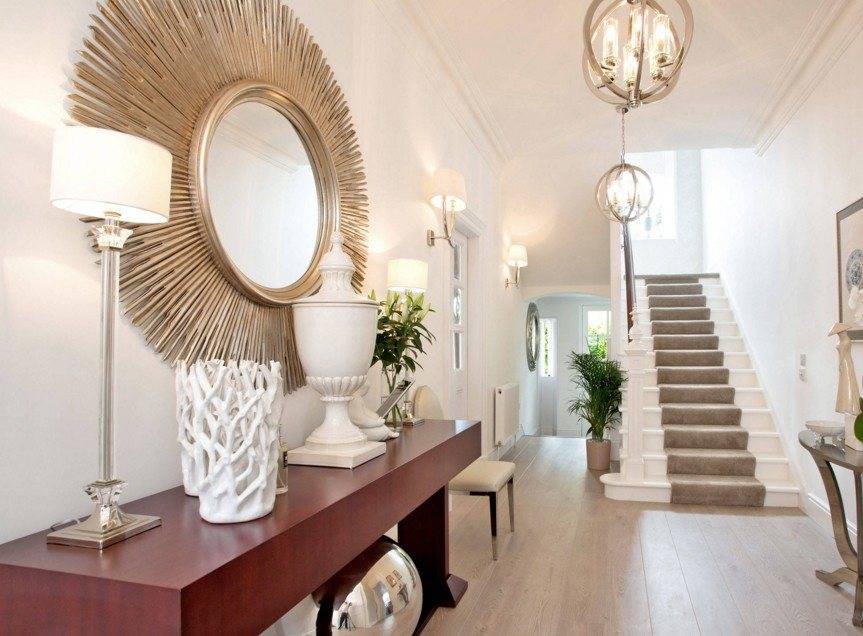 Выбор оформления исходит от общего стилистического решения. Так же важны габариты коридора. Они подразделяются на узкие, длинные, просторные и маленькие. В широком коридоре прекрасно разместится удобная кушетка или даже диванчик. В небольшой планировке остается место лишь для фотографий на стене или изящной маленькой полочки для ключей