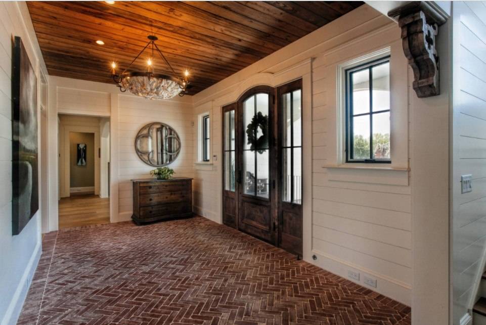 - Плитка. На сегодняшний день встречаются виды керамики, которые идеально впишутся в интерьер прихожей в частном доме (например, плитка формата XXL).
