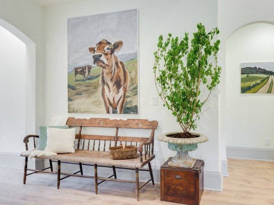 Не менее важно при обустройстве большой прихожей использование декоративных элементов: картины, постеры или семейные фотографии, статуэтки. Высокие вазы с цветами или декоративными растениями помогут заполнить и украсить пустые углы и стены