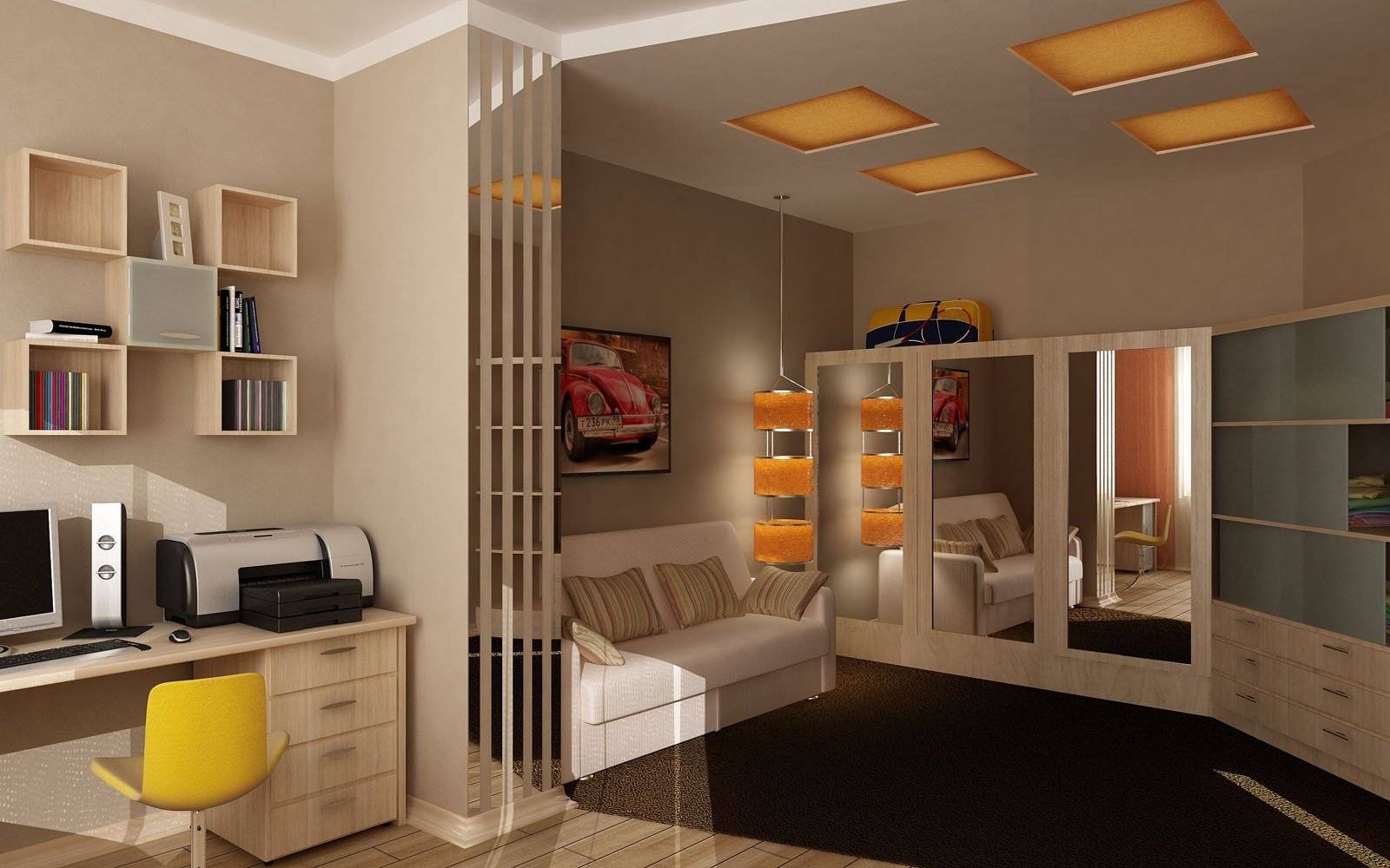 Жилое помещение надо рационально разделить на функциональные части. Зонирование в спальне юноши поможет сосредоточиться при выполнении определенных задач. На стадии создания проекта в комнате выделяют приоритетные области для парня.