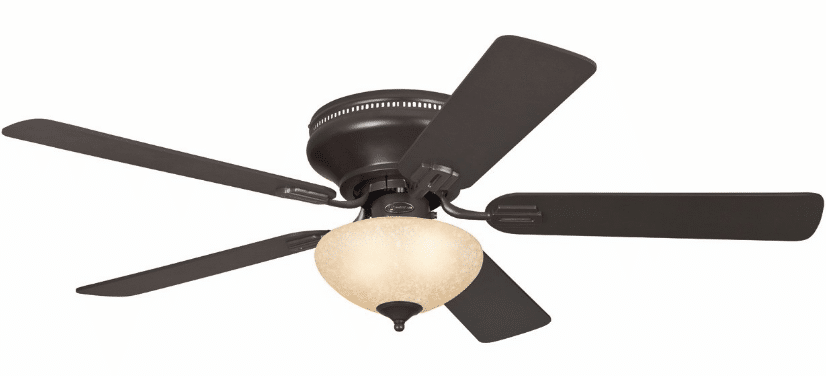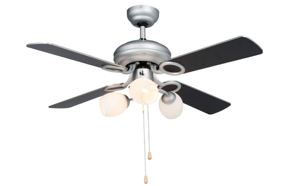 Данную модель можно приобрести всего за 4000 руб. В него встроена лампочка, поэтому выполняет функцию люстры. При этом подходит под любой интерьер. Можно устанавливать посередине комнаты, даже нет необходимости вешать люстру. Иногда можно использовать в комнате настольные светильники. В том случае если человеку будет недостаточно света. Хотя вентилятор отлично освещает небольшую комнату. У него мощность — 85 Вт, а лампочек — 200 ватт.